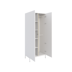 Szafa dwudrzwiowa Eloro to połączenie nowoczesnej prostoty i przemyślanej funkcjonalności. Zaprojektowana przez zespół SOLVEE, charakteryzuje się czystą formą i eleganckim minimalizmem, który doskonale wpisuje się w aktualne trendy wnętrzarskie.