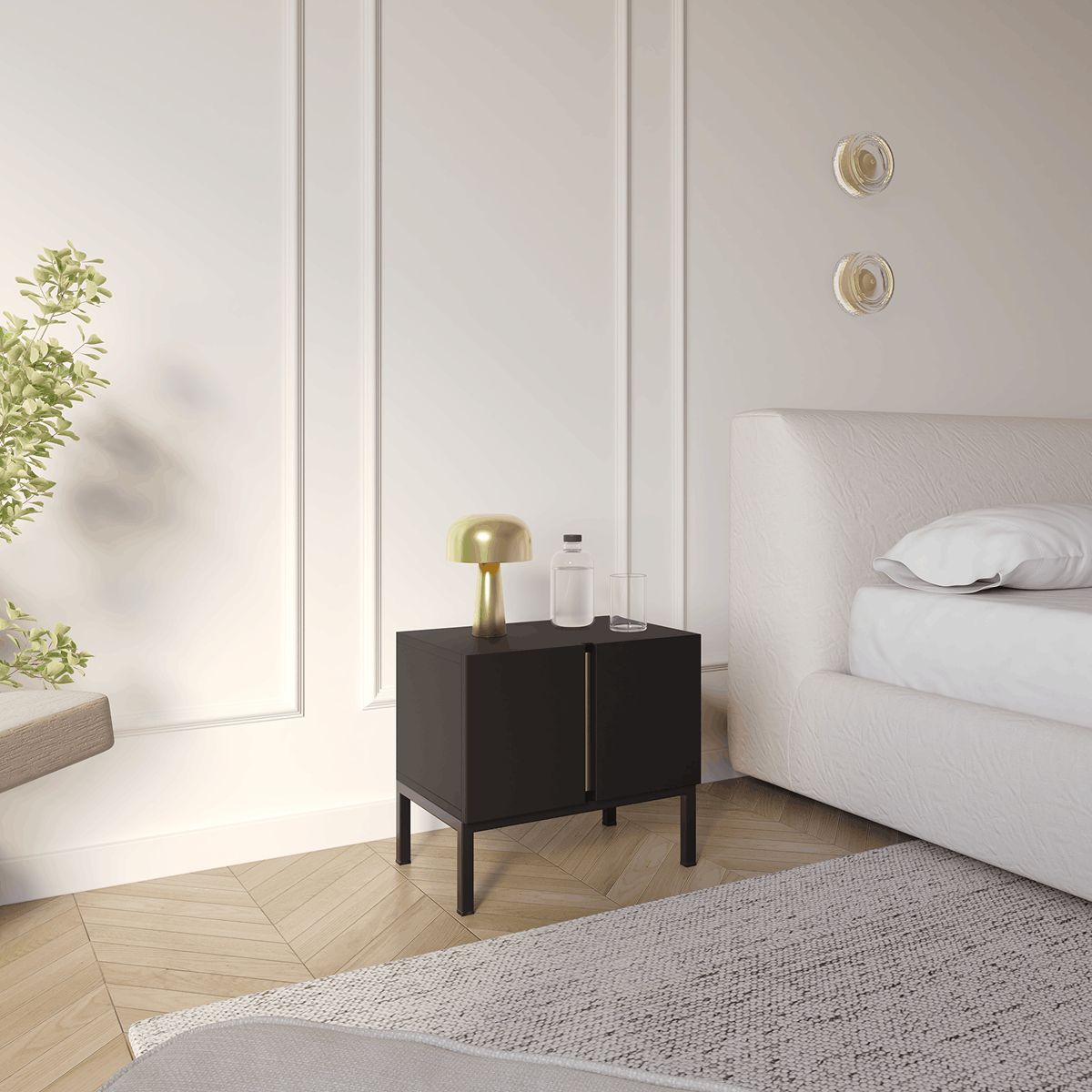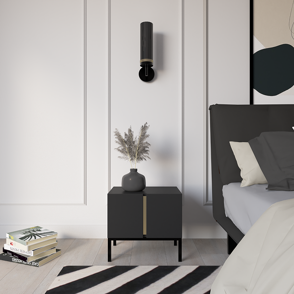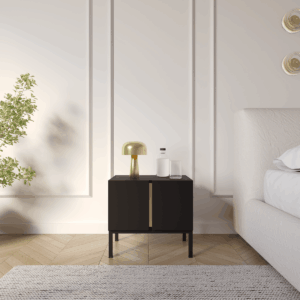 Wnętrze szafki zapewnia wystarczająco dużo miejsca na najpotrzebniejsze drobiazgi — książkę, lampkę czy okulary. Gładki front i staranne wykończenie podkreślają wysoką jakość wykonania i dbałość o każdy detal.
