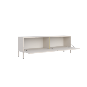 Zrównoważone proporcje i czyste linie nadają meblowi lekkość, a przemyślane wnętrze oferuje miejsce na sprzęt RTV, piloty i inne drobiazgi. Wszystko ma swoje miejsce, dzięki czemu salon zyskuje uporządkowany i harmonijny wygląd.