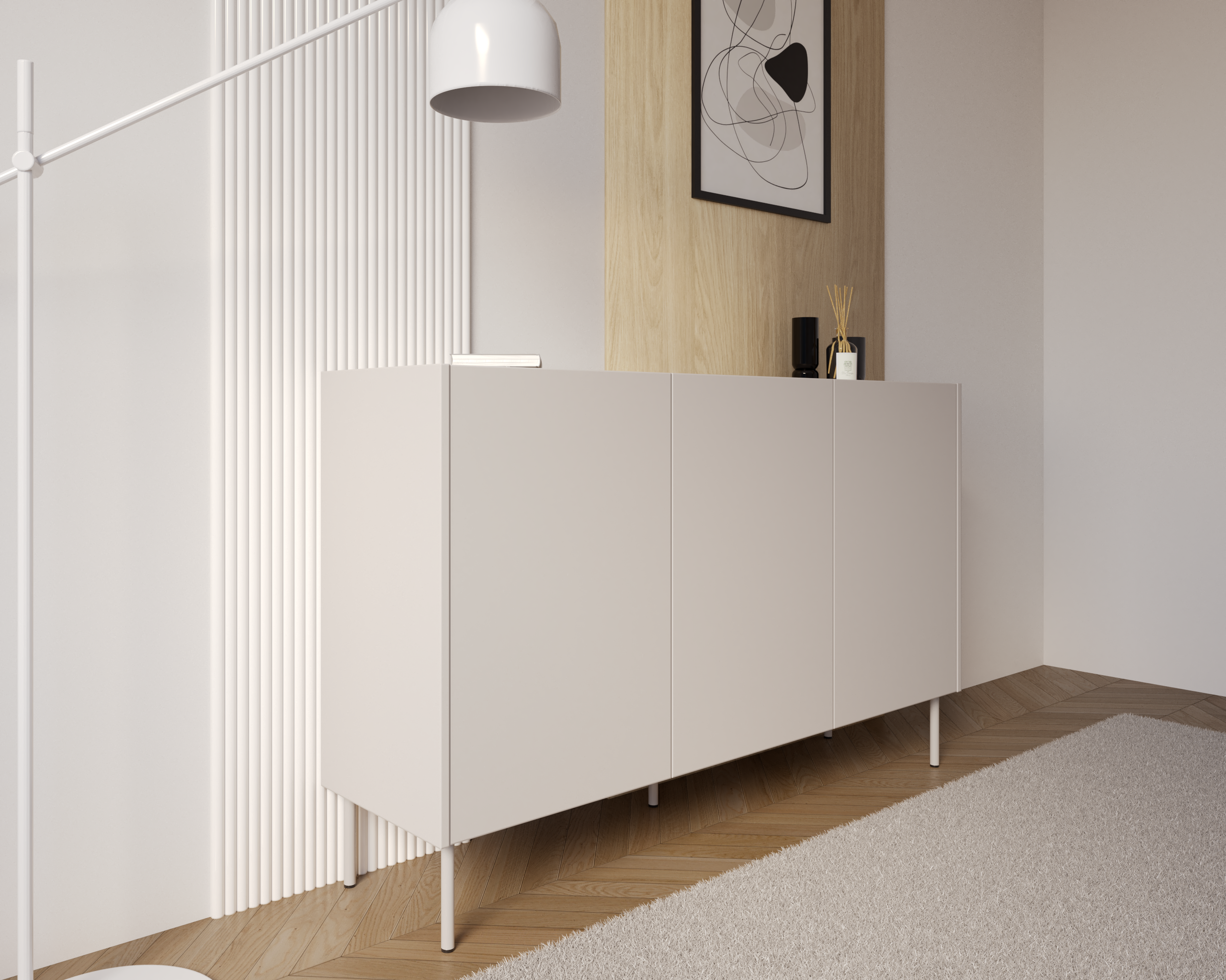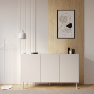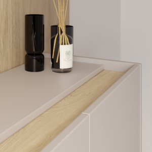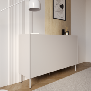SENSO to kolekcja, w której minimalistyczna forma została wzbogacona o charakterystyczny detal. Dekoracyjny pas w górnej części bryły nadaje komodzie unikalnego wyglądu i subtelnie przełamuje prostotę frontów. Dzięki temu mebel doskonale odnajduje się zarówno w salonie, jak i sypialni, wprowadzając elegancję i wyrazisty, ale nadal spójny akcent.