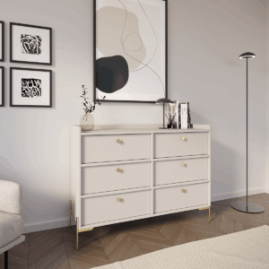 Komoda z kolekcji LUX to synonim nowoczesnej elegancji i praktyczności. Jej pojemne wnętrze pozwala na przechowywanie ubrań, tekstyliów i akcesoriów, dzięki czemu łatwiej utrzymasz porządek w domu. To mebel, który sprawdzi się zarówno w sypialni, jak i w salonie czy przedpokoju.