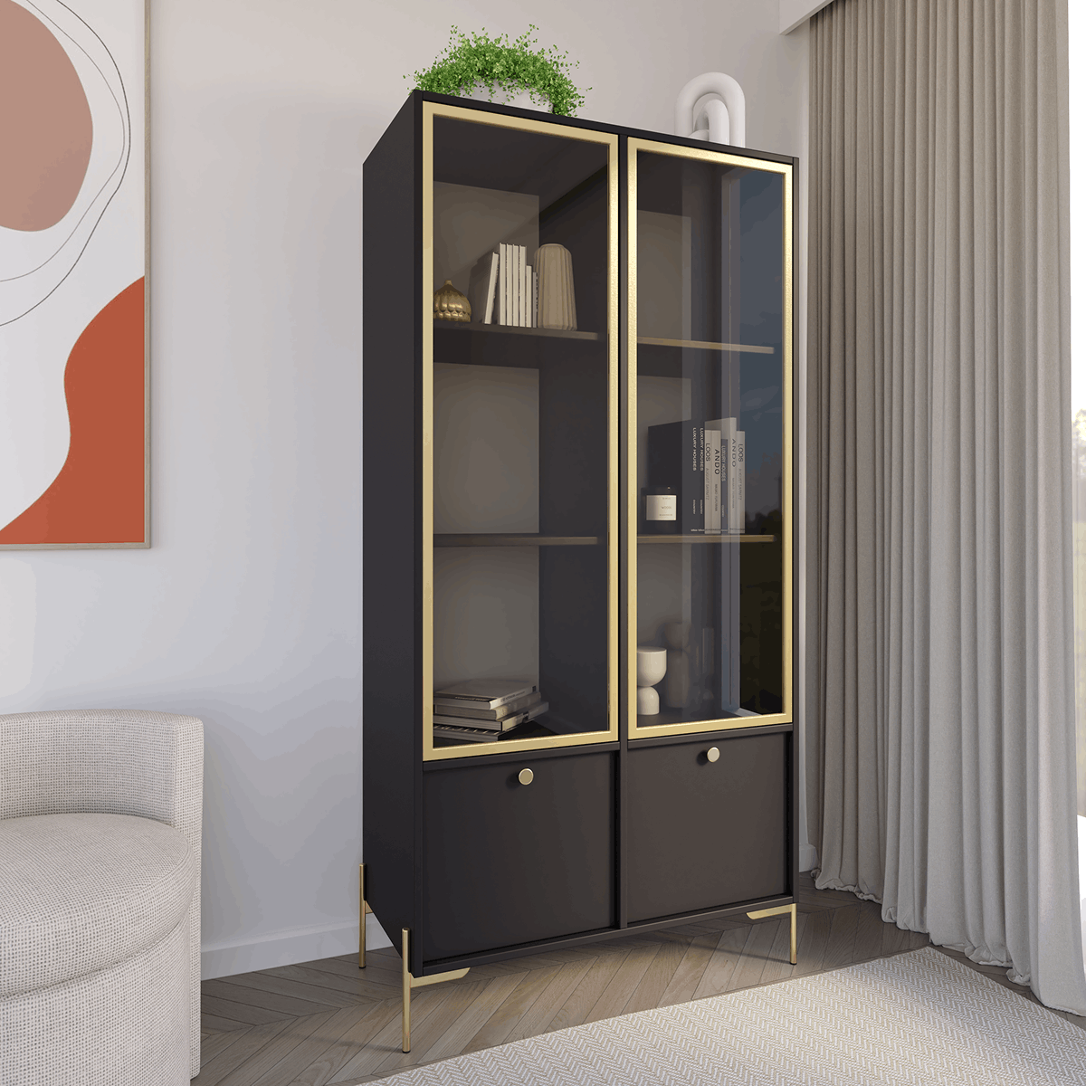 Pojemne wnętrze witryny oferuje dodatkowe miejsce do przechowywania, a starannie dobrane detale podkreślają jej wyjątkowy charakter. To mebel, który nie tylko porządkuje przestrzeń, ale także staje się jej ozdobą. Z LUX Twoje wnętrze nabierze elegancji i niepowtarzalnego stylu.