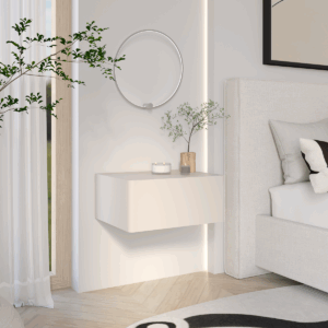 Wisząca szafka nocna Olio to wyjątkowy akcent w sypialni — lekka, nowoczesna i niezwykle praktyczna. Zawieszona na ścianie, dodaje wnętrzu wizualnej przestronności, a zaokrąglone krawędzie nadają jej miękkości i elegancji.
