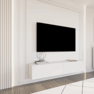 Wisząca szafka RTV Olio to nowoczesna interpretacja klasycznego mebla do salonu. Unosząca się nad podłogą bryła nadaje wnętrzu lekkości, a zaokrąglone narożniki wprowadzają przyjemną harmonię i spokój.