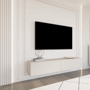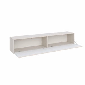Wisząca szafka RTV Olio to nowoczesna interpretacja klasycznego mebla do salonu. Unosząca się nad podłogą bryła nadaje wnętrzu lekkości, a zaokrąglone narożniki wprowadzają przyjemną harmonię i spokój.
