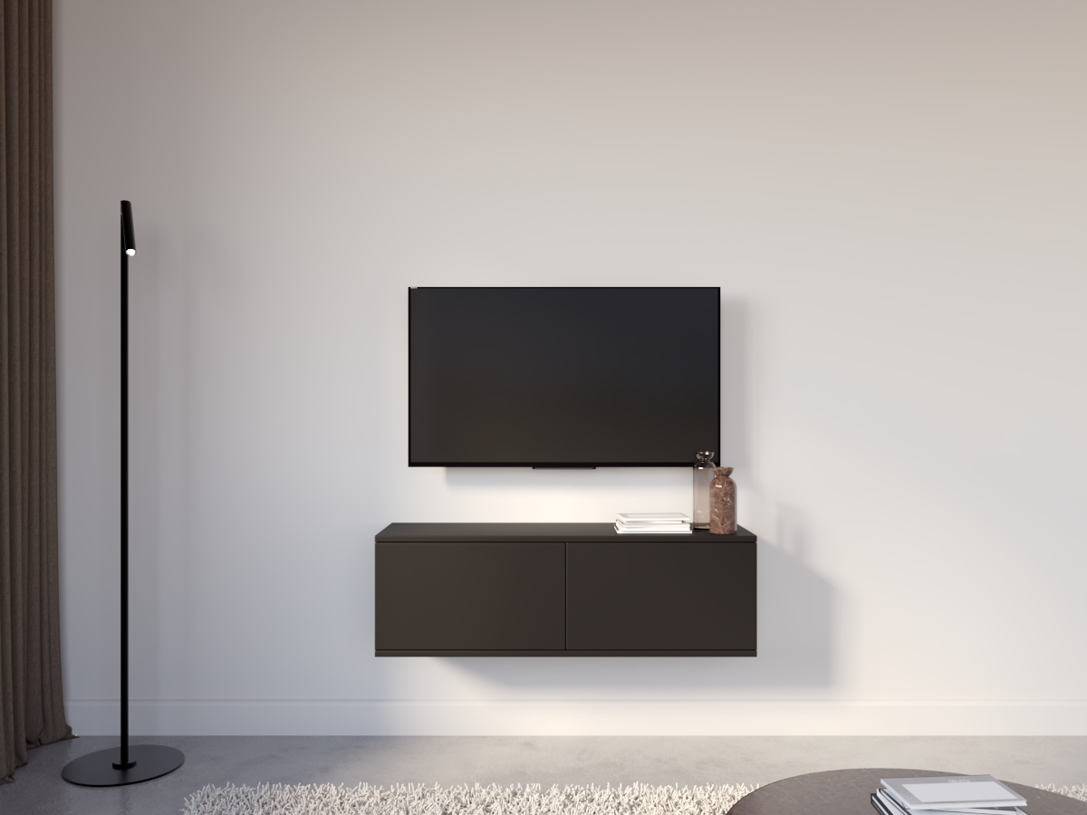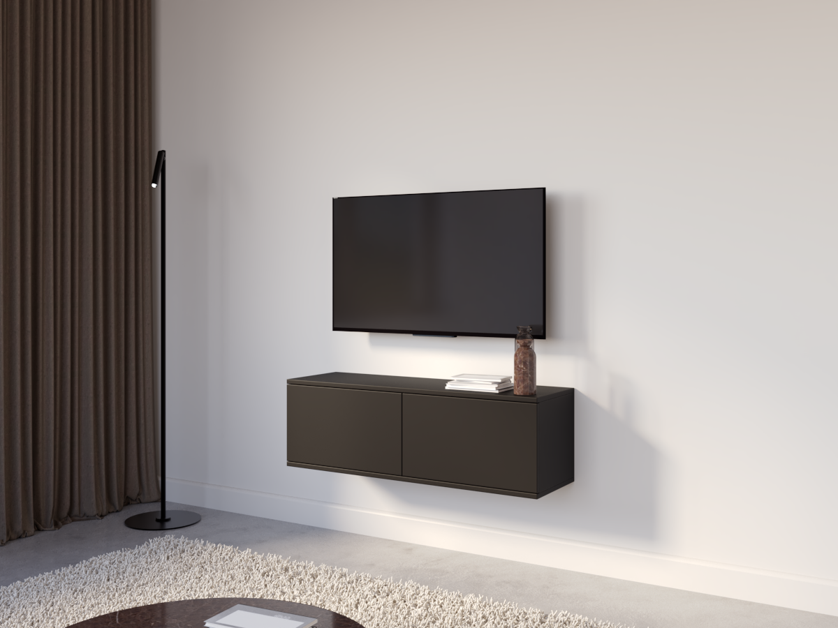 Konstrukcja wisząca optycznie porządkuje przestrzeń i nadaje wnętrzu lekkości, a funkcjonalne wnętrze zapewnia wygodne miejsce na sprzęt RTV oraz niezbędne akcesoria. To idealne rozwiązanie dla osób ceniących estetykę i nowoczesną organizację przestrzeni.