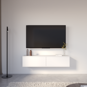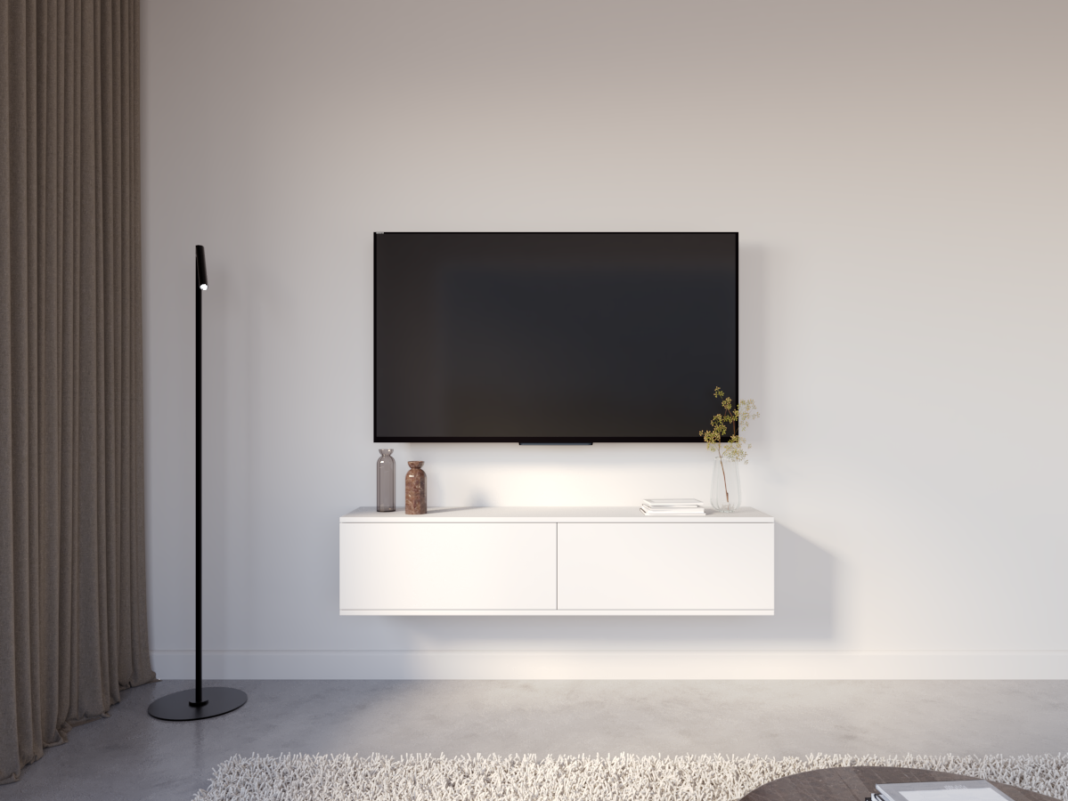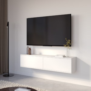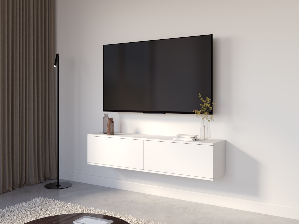 Konstrukcja wisząca optycznie porządkuje przestrzeń i nadaje wnętrzu lekkości, a funkcjonalne wnętrze zapewnia wygodne miejsce na sprzęt RTV oraz niezbędne akcesoria. To idealne rozwiązanie dla osób ceniących estetykę i nowoczesną organizację przestrzeni.