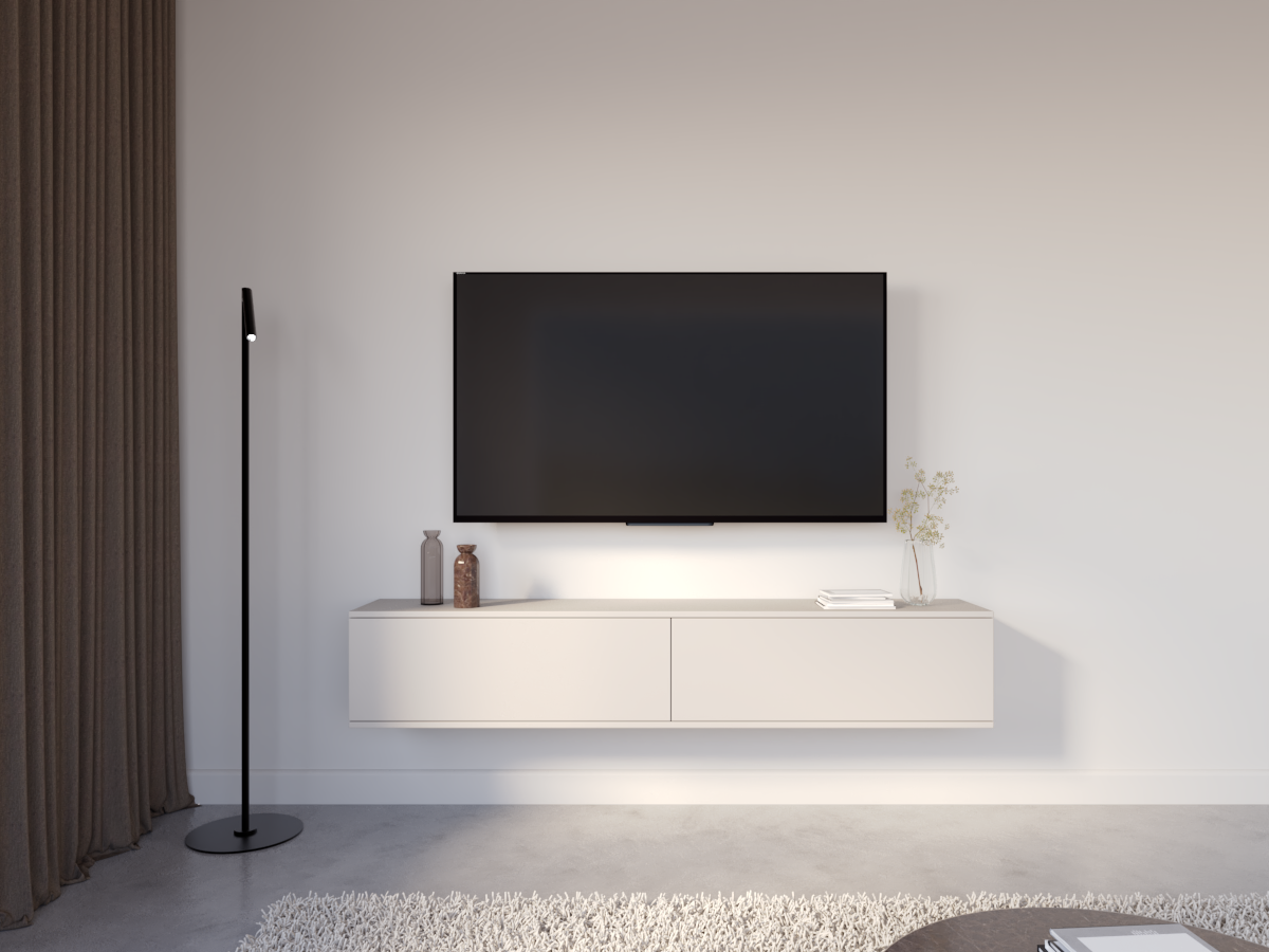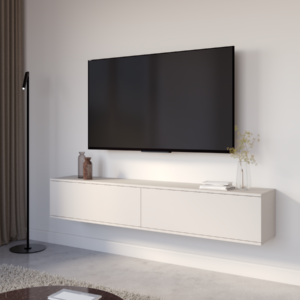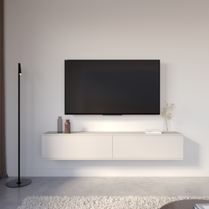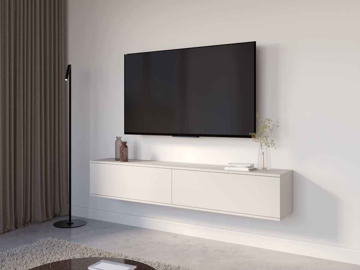 Konstrukcja wisząca optycznie porządkuje przestrzeń i nadaje wnętrzu lekkości, a funkcjonalne wnętrze zapewnia wygodne miejsce na sprzęt RTV oraz niezbędne akcesoria. To idealne rozwiązanie dla osób ceniących estetykę i nowoczesną organizację przestrzeni.