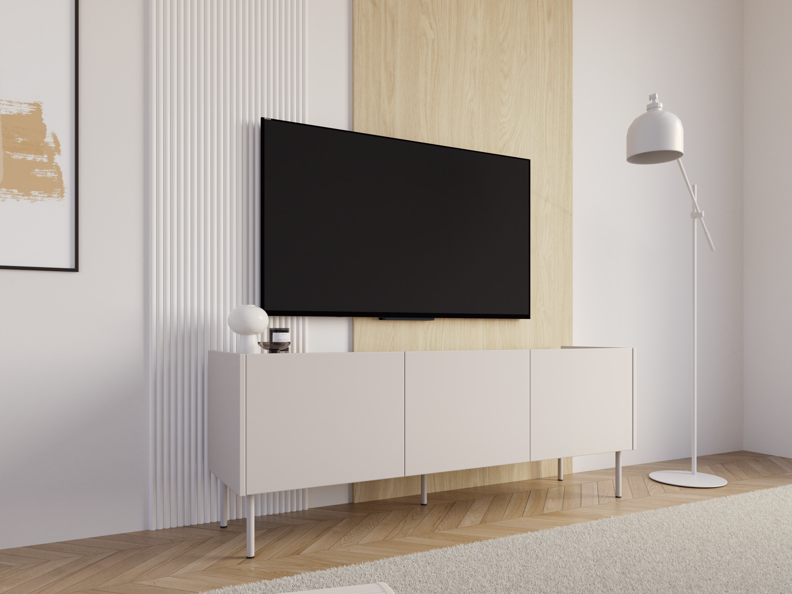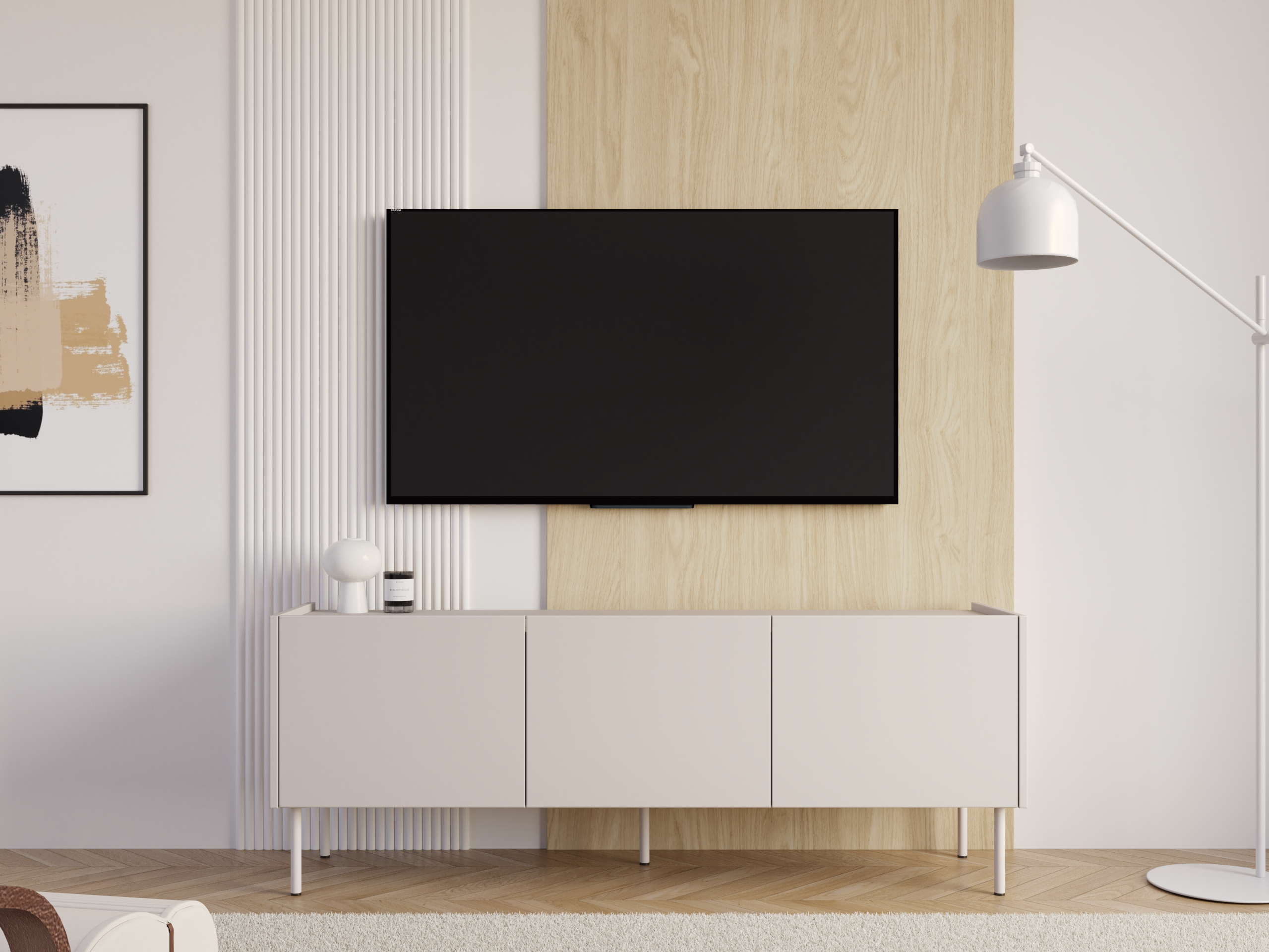 Szafka RTV z kolekcji SENSO to połączenie nowoczesnej formy z wyrazistym detalem, który nadaje meblowi unikalnego charakteru. Charakterystyczny, dekoracyjny pas w górnej części bryły przełamuje prostotę frontów, tworząc spójną i elegancką kompozycję.