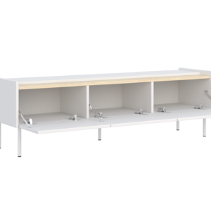 Szafka RTV z kolekcji SENSO to połączenie nowoczesnej formy z wyrazistym detalem, który nadaje meblowi unikalnego charakteru. Charakterystyczny, dekoracyjny pas w górnej części bryły przełamuje prostotę frontów, tworząc spójną i elegancką kompozycję.
