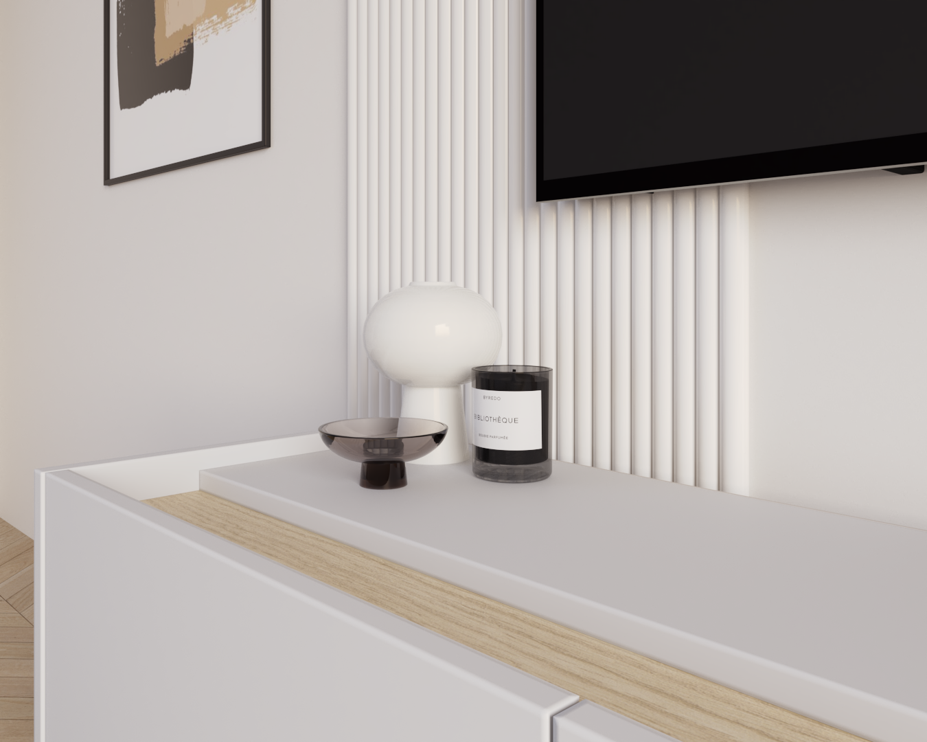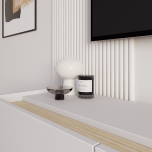 SENSO to kolekcja, w której minimalistyczna forma została wzbogacona o charakterystyczny detal. Dekoracyjny pas w górnej części bryły nadaje meblowi unikalnego wyglądu i subtelnie przełamuje prostotę frontów. Dzięki temu szafka doskonale odnajduje się w nowoczesnych wnętrzach, wprowadzając do nich elegancję i wyrazisty, ale nadal spójny akcent.