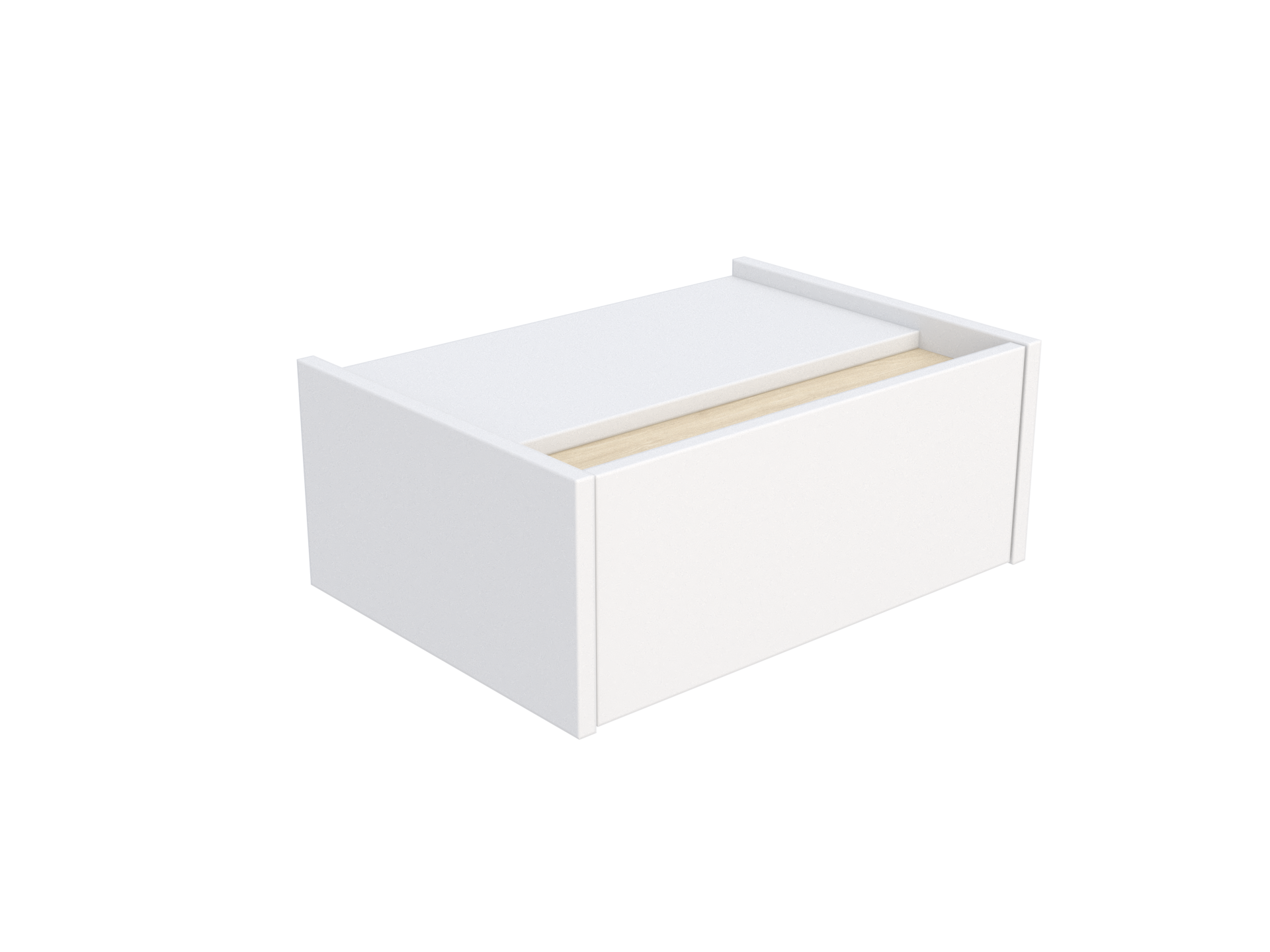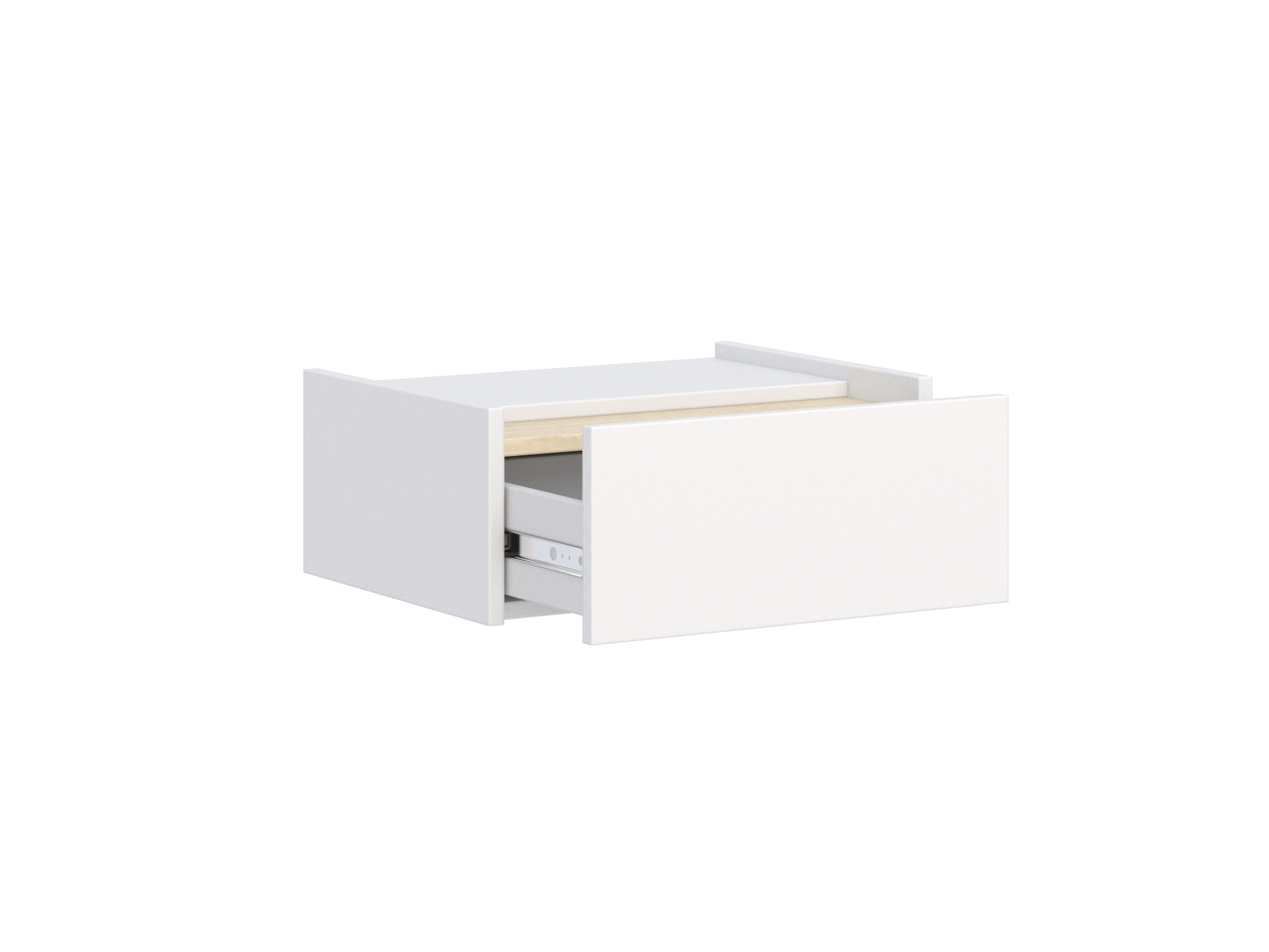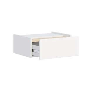 Konstrukcja wisząca nadaje lekkości całej bryle i pozwala na wizualne uporządkowanie przestrzeni wokół łóżka. Kompaktowe wnętrze oferuje praktyczne miejsce na najpotrzebniejsze przedmioty – książkę, telefon czy drobne akcesoria – zapewniając wygodę codziennego użytkowania.