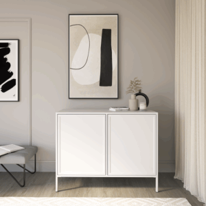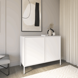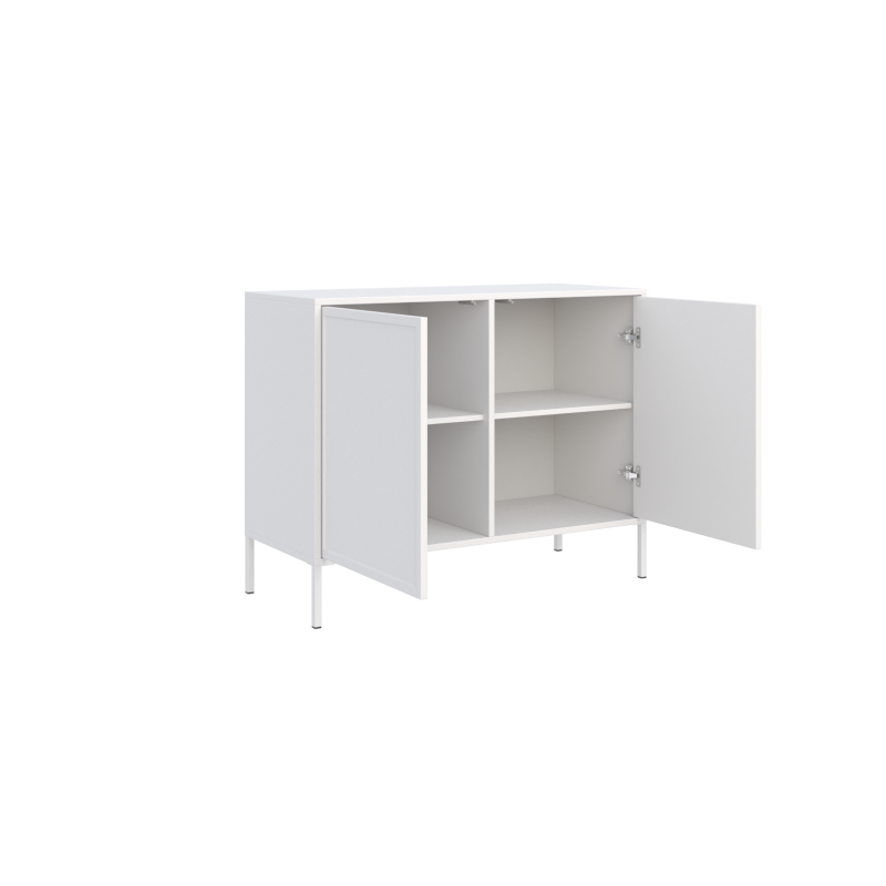 Za prostymi frontami kryje się przestrzeń, która została zaprojektowana z myślą o codziennej funkcjonalności. Pojemne półki ułatwiają przechowywanie i utrzymanie porządku, a solidne wykonanie zapewnia trwałość na lata. Komoda łączy praktyczność z eleganckim stylem, który doskonale komponuje się z każdym wnętrzem.