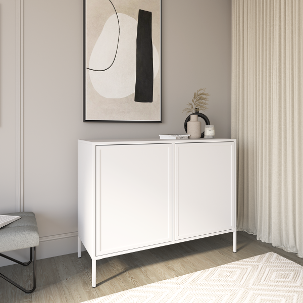 Velvet Komoda Dwudrzwiowa z Frezowanymi Frontami MDF Biała