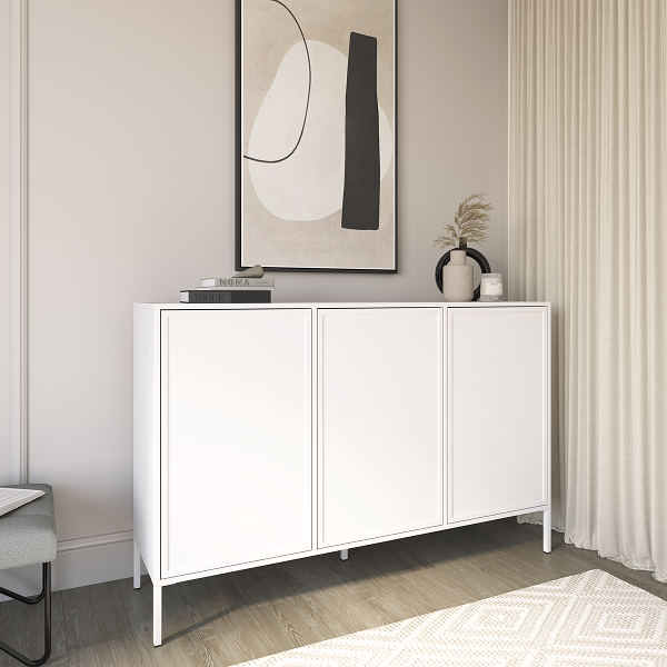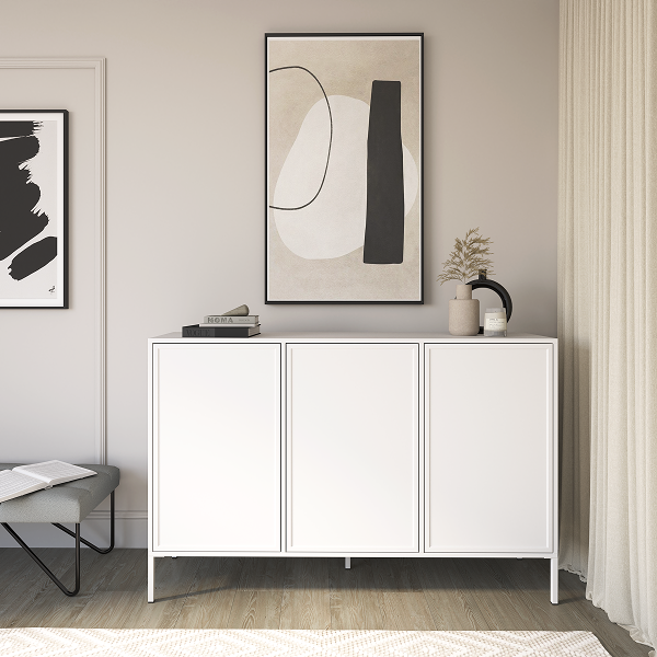 Velvet Komoda Trzydrzwiowa z Frezowanym Frontami MDF Biała