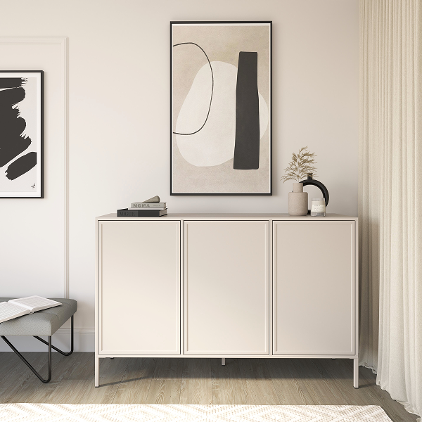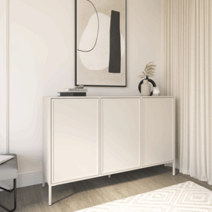 Komoda trzydrzwiowa z kolekcji Velvet to wyraz dojrzałego, spokojnego designu, w którym prostota spotyka się z elegancją. Zespół projektowy SOLVEE stworzył mebel, który łączy funkcjonalność z estetyką inspirowaną miękkimi, naturalnymi kształtami. To idealny wybór dla wnętrz, w których liczy się zarówno styl, jak i komfort użytkowania.