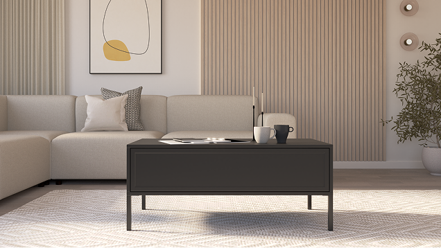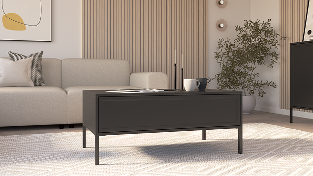 Stolik kawowy z jedną szufladą i frezowanym frontem MDF Czarny