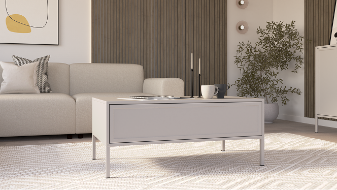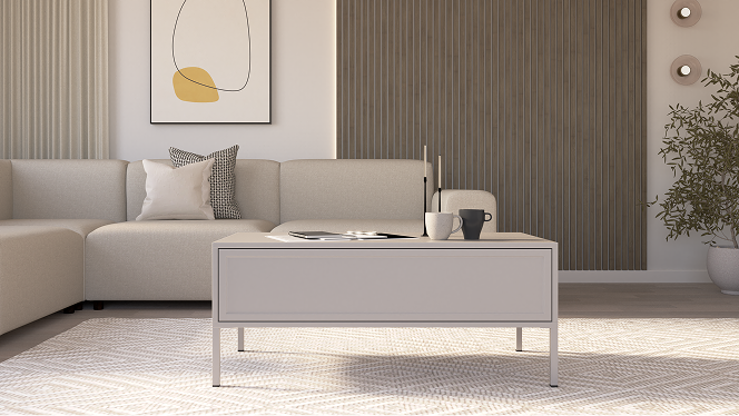 Solidny blat oraz stabilna podstawa tworzą mebel praktyczny i wygodny w codziennym użytkowaniu. Stolik doskonale współgra z pozostałymi elementami kolekcji, tworząc spójną, wyważoną aranżację.