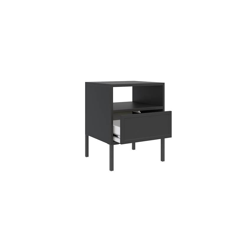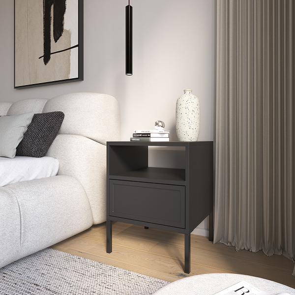 Szafka nocna z jedną szufladą i frezowanym frontem MDF Czarna