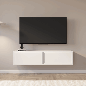 Dzięki konstrukcji wiszącej mebel nie tylko oszczędza przestrzeń, ale też wprowadza wizualną harmonię. Wnętrze szafki zapewnia wygodne miejsce na sprzęt multimedialny, a precyzyjne wykończenie podkreśla wysoką jakość wykonania.
