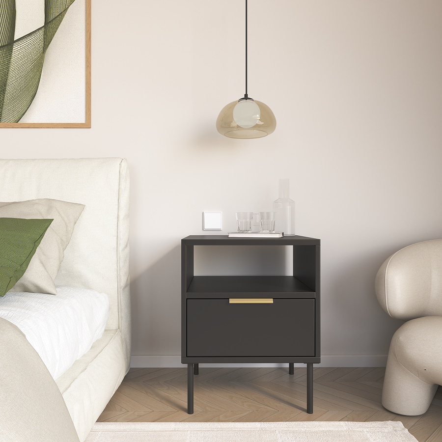 Szafka nocna Vena to idealne uzupełnienie nowoczesnej sypialni. Łączy prostotę i elegancję, tworząc atmosferę spokoju z nutą luksusu.