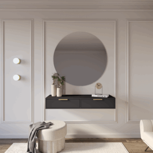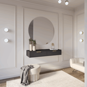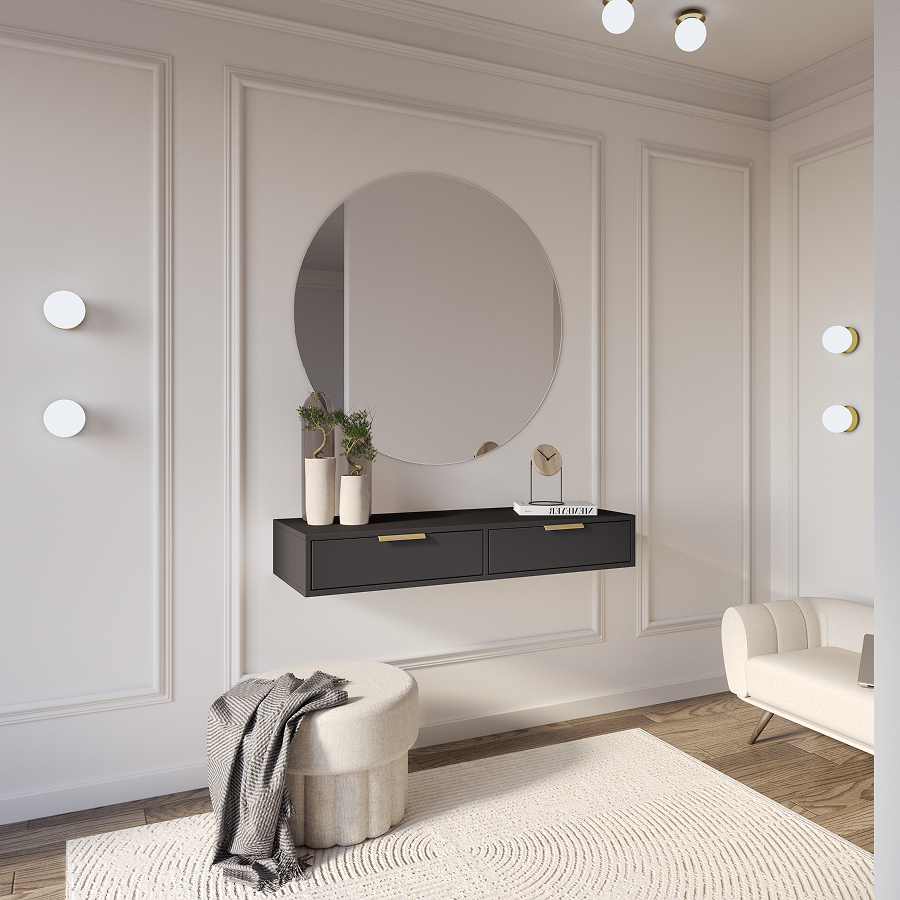 Toaletka z kolekcji Vena to wyjątkowe połączenie prostoty, funkcjonalności i elegancji. Zaprojektowana przez zespół SOLVEE, urzeka subtelną formą i złotym akcentem w postaci krawędziowych uchwytów. To detal, który dodaje jej kobiecego uroku i nowoczesnego charakteru.
