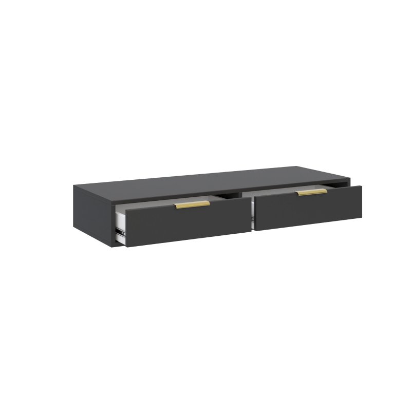 Każdy element kolekcji – od komód, poprzez witryny i szafki RTV, po stoliki i toaletki – łączy funkcjonalność z dopracowanym wzornictwem. Złote detale nadają wnętrzom ciepło i charakter, nie dominując nad ich minimalistyczną stylistyką.